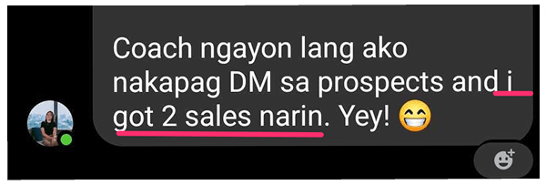 At first, I'm scared to try. But after the workshop, we sold a total of Php210K. Selling is offering help and extending help to them.