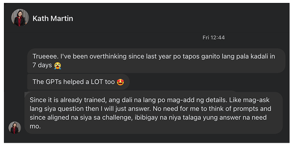 Yes, anti-overthinking kasi yung challenge and concrete steps but digestible content and digestible execution.