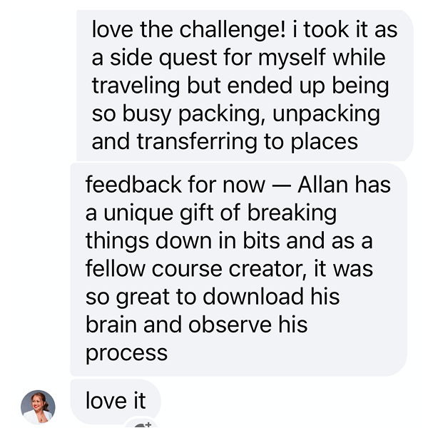 There's a daily structure & that made it easy take consistent action and clarify my offer message.